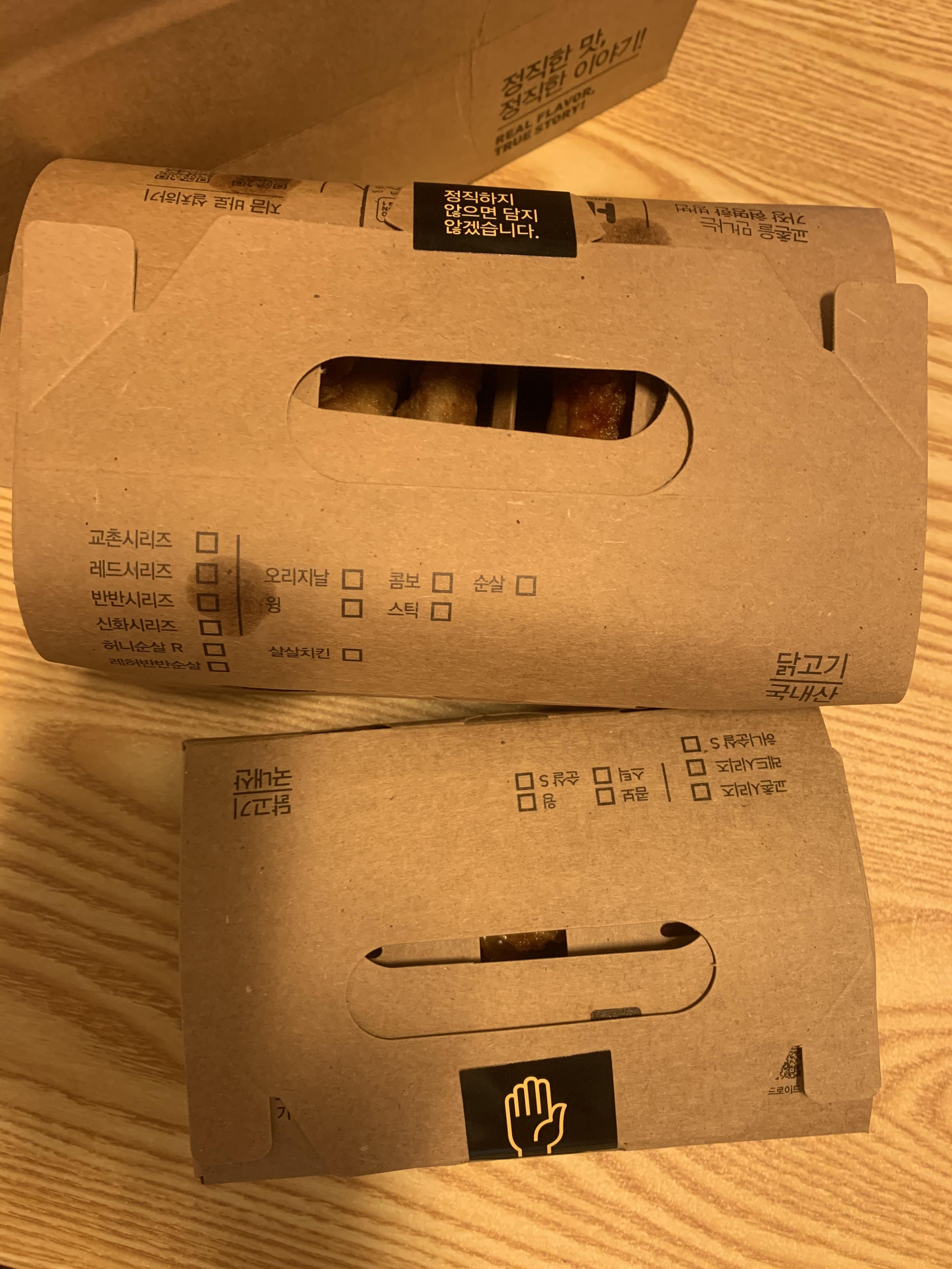 경주 용감점을 확인하고는 시그니처 세트를 주문했습니다. 20분 정도 기다린 듯합니다. 용강동 구석구석을 구경 다니다 보니 시간이 금방 지나가 치킨을 찾아옵니다. 차 안에서 풍겨오는 냄새는 침샘을 자극합니다. 용강도에서 집까지 오는 시간 내내 향으로 치킨을 먹습니다. 그러다 보니 더욱더 먹고 싶은 마음에 집에 도착하자마자 서둘러 봅니다. 서두르면 항상 무언가 잊기 마련이죠? 다 먹고 정신을 차려보니 너무 맛있는 치킨 사진이 몇 장 없다는 것이 아쉽습니다.